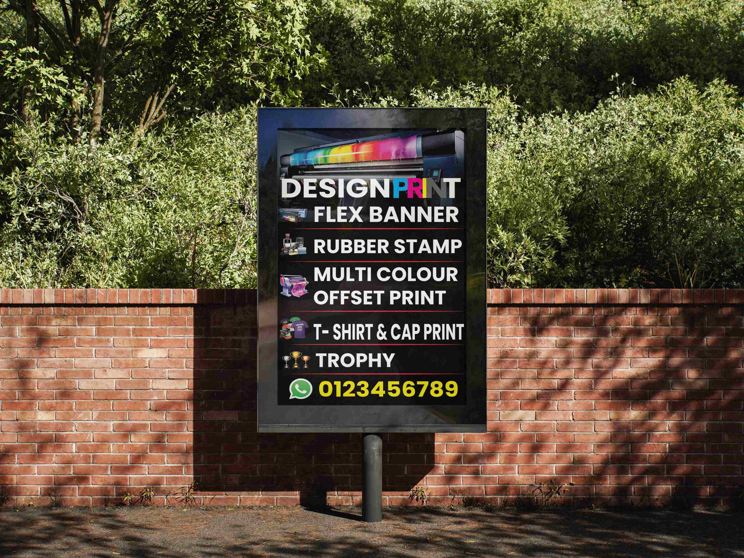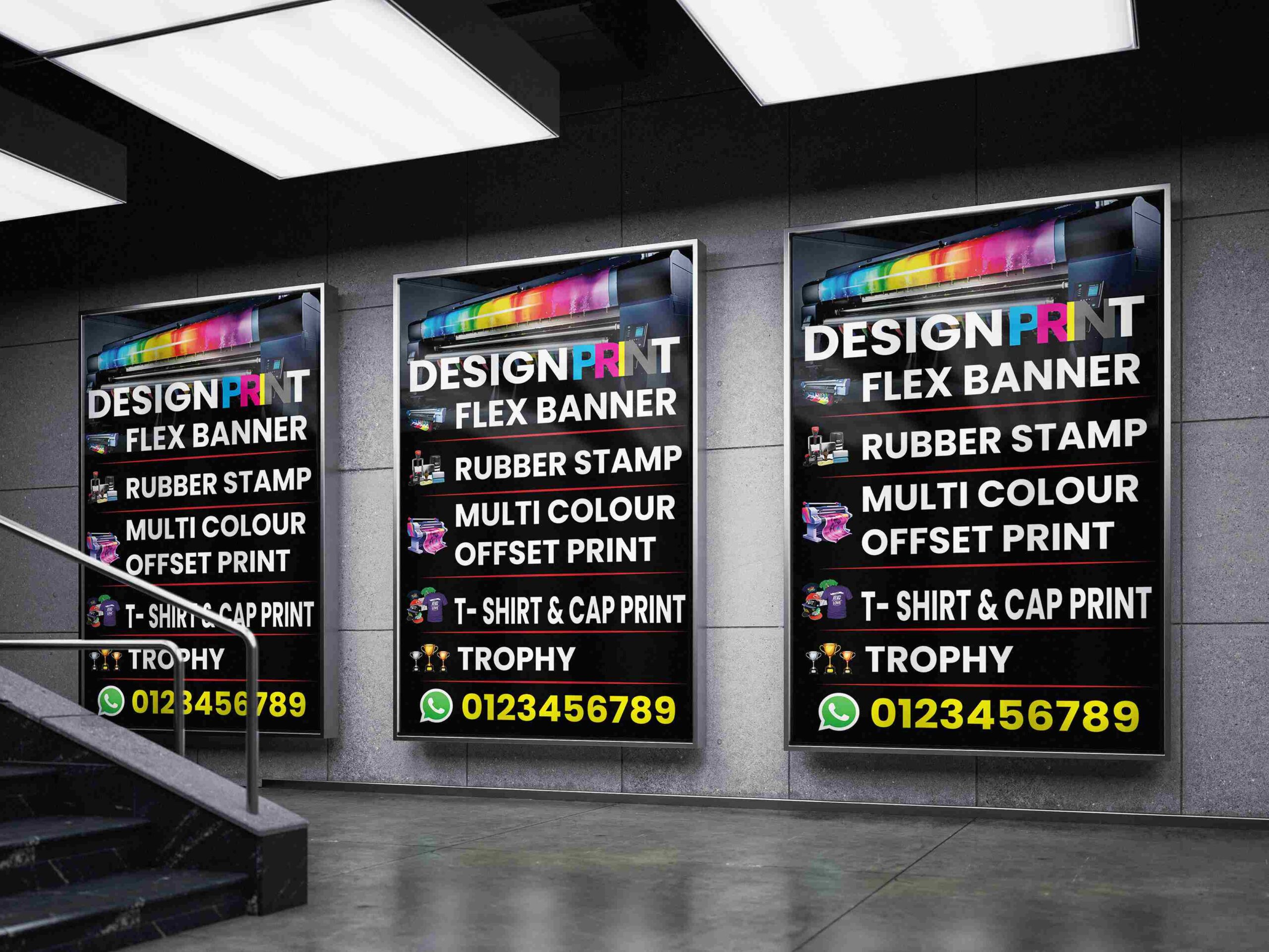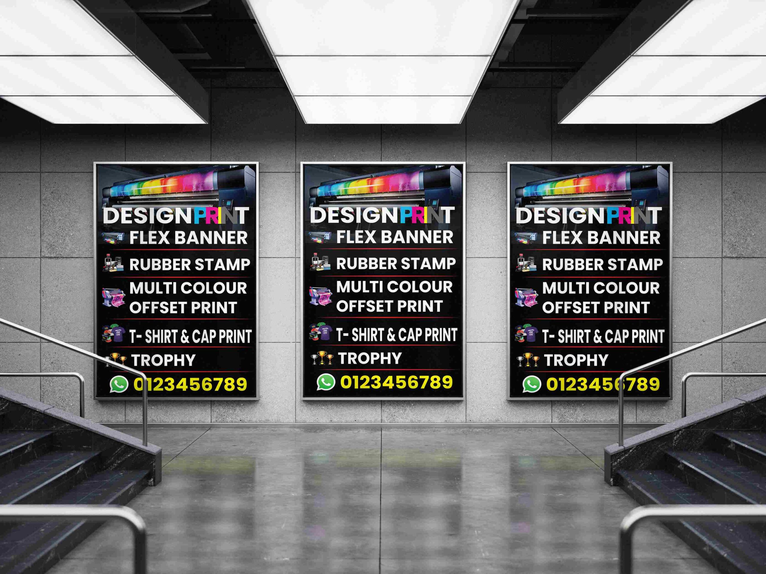 This Flex Printing Banner PSD Template is designed to cover multiple services in one smart layout. With a 2.5×4 ft size, it is compact yet highly impactful, making it suitable for shopfront displays, wall posters, or roadside banners.