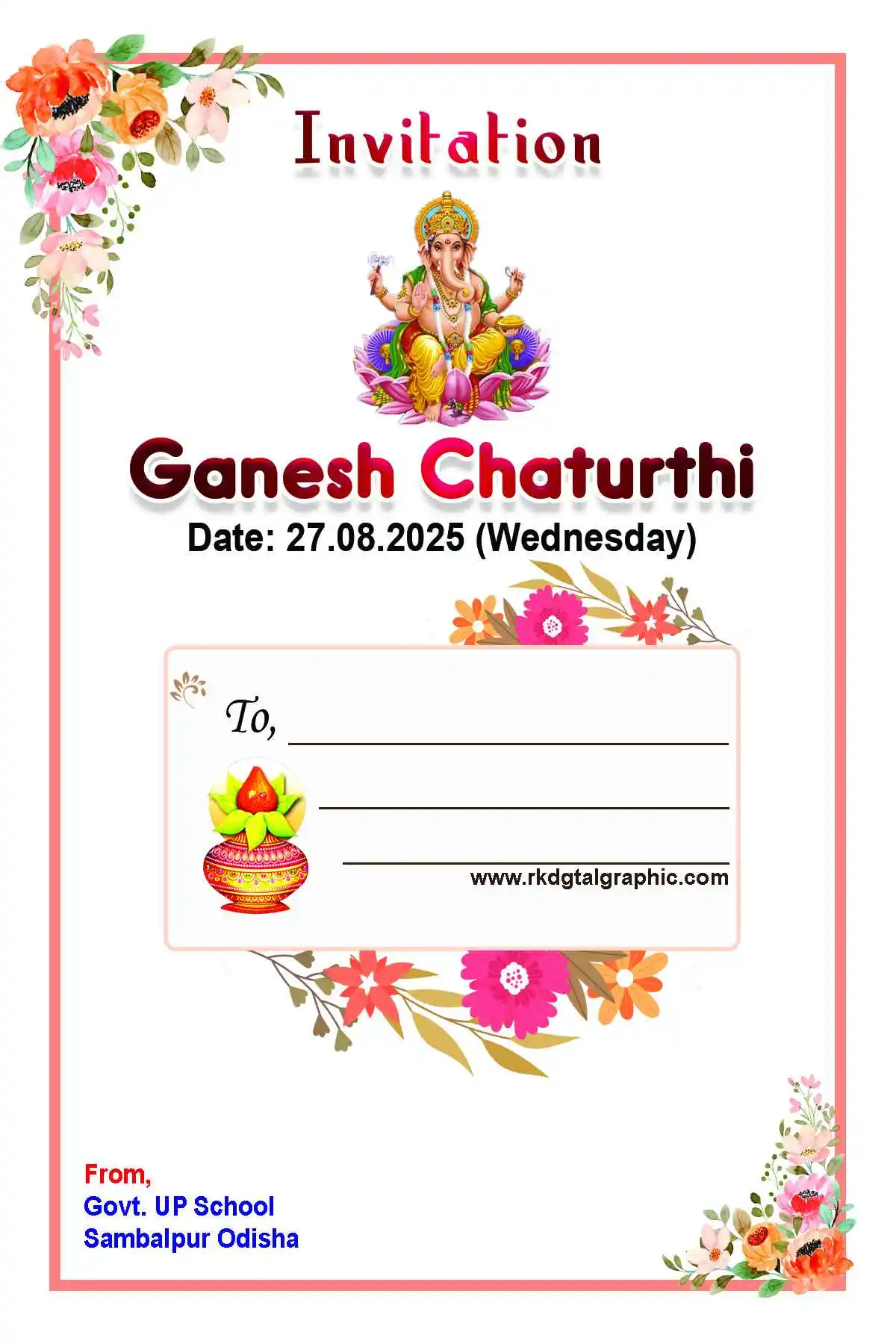 This Ganesh Chaturthi invitation card is versatile enough for various events: